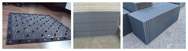 冷却塔塔芯材料由PVC聚乙烯片吸塑而成,主要采用了梯形波、点波形、S波型、人字波形填料,散热面积增长系数大,水流在板面上分布性能好,水和空气流经板面时扰动大等优点。本公司根据淋水片这一优点,专业设计了pvc淋水片吸塑机,为冷却塔填料生产提供了更加优越便捷的设备。
